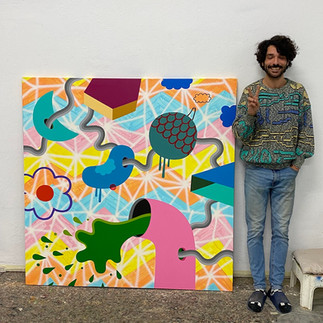 Through drawings, painting, sculptures and installations he creates an imaginary scenery full of figures and colours… the Pinya’s Universe. His artworks are inspired by films, TV series and cartoons